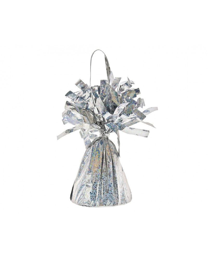 Závažie na udržanie viacerých balónikov naplnených héliom v striebornej farbe.